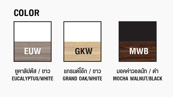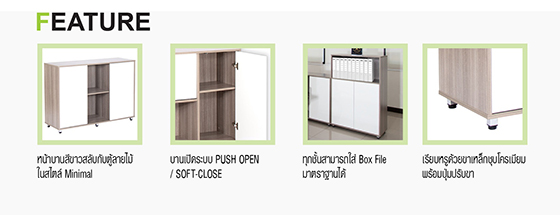 – ภายในมีแผ่นชั้น สามารถปรับระดับได้ ทำจากไม้ PARTICLE BOARD ความหนา 16 มม. มม. เคลือบผิว MELAMINE RESIN FILM