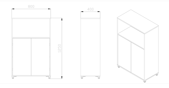 ตู้เอกสารกลาง ชั้นบนโล่ง + บานเปิด 1 คู่ พร้อมแผ่นชั้น ขนาด 80 x 40 cm รหัส 4851