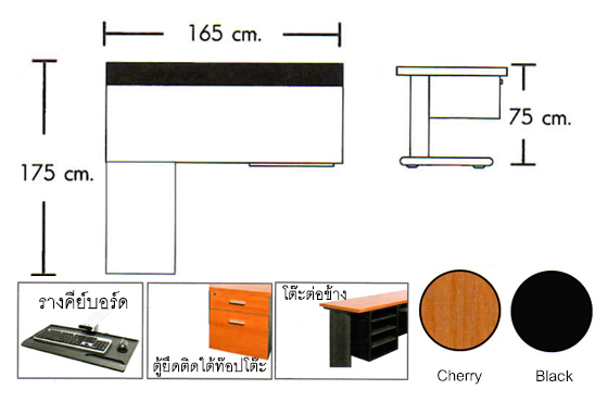 – มีตู้ลิ้นชักติดใต้โต๊ะ สามารถล๊อคได้ กว้าง 41 cm ลึก 57.5 cm สูง 44 cm.