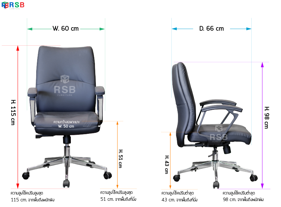 – ขนาด กว้าง 60 x ลึก 66 x สูง 98-115 cm (ความกว้างเฉพาะเบาะนั่ง 50 x 50 cm)