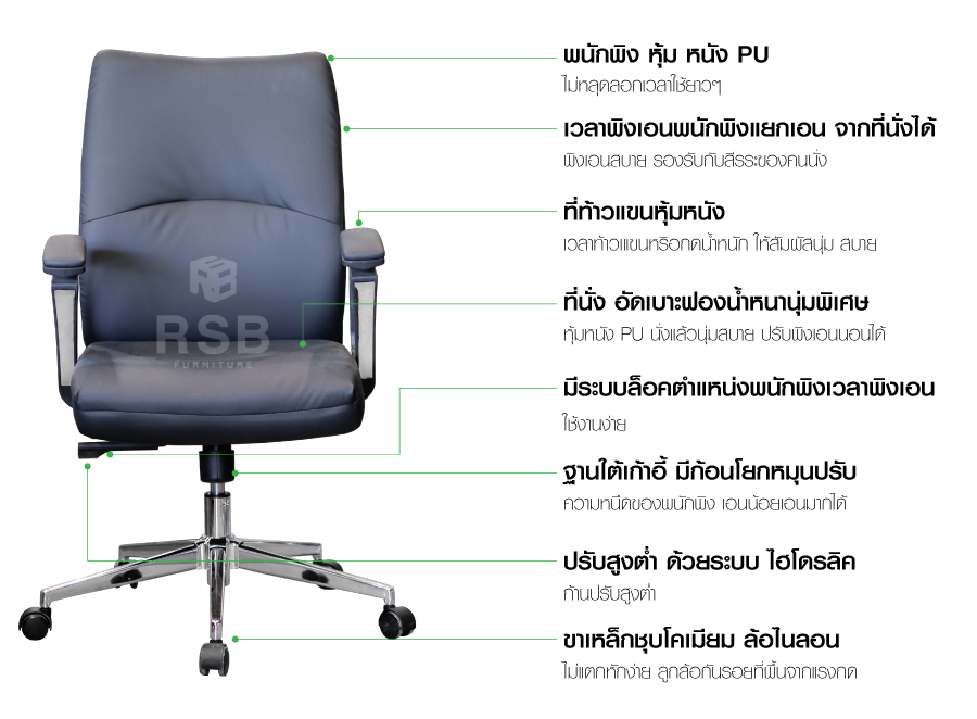 – มีระบบล็อคตำแหน่งพนักพิงเวลาพิงเอน ใช้งานง่าย
