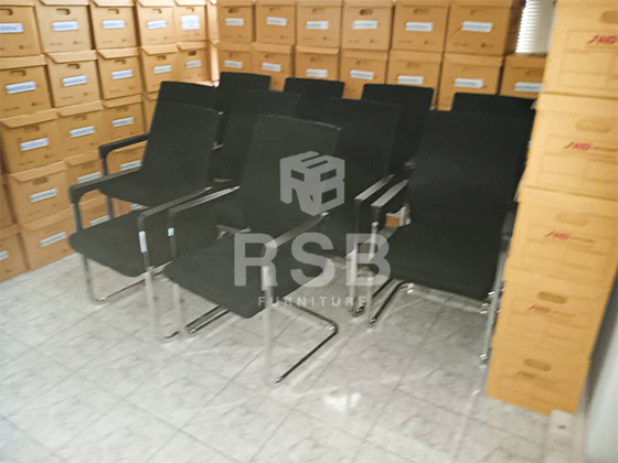 หน้างานนี้ลูกค้าต้องการเก้าอี้สำนักงาน แบบไม่มีล้อค่ะ เพราะเคยใช้แบบล้อแล้วเกิดปัญหาล้อแตกบ่อย ได้เลือกใช้เป็นเก้าอี้สำนักงาน ขาเหล็ก ตัว C รหัสสินค้า 4464 รุ่นนี้โครงพนักพิง เป็นแผ่นไฟเบอร์เต็มหลัง ด้านหน้าหุ้มด้วยตาข่ายอีกชั้น ใต้ฐานเก้าอี้ มีคานช่วยเหล็ก ช่วยรับน้ำหนัก พิงเอน รับกับหลังได้ดีนั่งสบาย