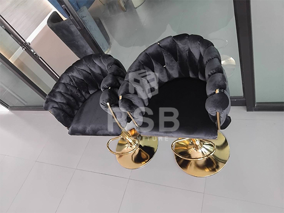 จัดส่งเรียบร้อย เก้าอี้บาร์ โครงขาเหล็กสีทอง บุด้วยผ้ากำมะหยี่สีดำ ถักซ้อนลาย รหัสสินค้า 4698 เก้าอี้ขาเหล็กสีทองที่มาพร้อมกับเบาะนั่งผ้ากำมะหยี่สีดำ สวยหรูมากค่ะ เก้าอี้ปรับสูงต่ำได้ ก้านปรับอยู่ใต้ที่นั่ง