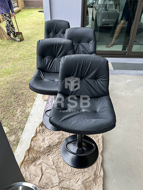 ภาพถ่ายจากหน้างานที่นำเก้าอี้บาร์ รุ่นพนักพิงดีไซน์ 2 ชั้นหนานุ่มมาก หุ้มด้วยหนังสีดำ สเปคหนังไม่หลุดลอก รหัสสินค้า 4892 ไปจัดส่งถึงสถานที่ ลูกค้านำไปใช้งานภายในออฟฟิศค่ะ เก้าอี้ปรับสูงต่ำได้มีที่วางเหยียบเท้า นั่งสบายดีไซน์ของเก้าอี้สีดำทั้งตัว ขาเหล็กก็สีดำ