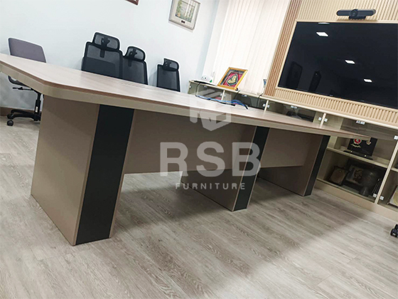 ภาพถ่ายจากหน้างานจริงที่นำโต๊ะประชุมรุ่น 3 ขา ไปจัดส่ง ในภาพเป็นห้องประชุมของบริษัทลูกค้าค่ะ โต๊ะประชุมรุ่นนี้ ดีไซน์ทำท๊อปโต๊ะ แบบหนา และลบมุมช่วยกันกะแทกเวลาเดินชน ทำขาโต๊ะแบบหนา 3 ขา มีแผ่นบังหน้าตรงกลางให้ด้วยค่ะ รหัสสินค้า 5289