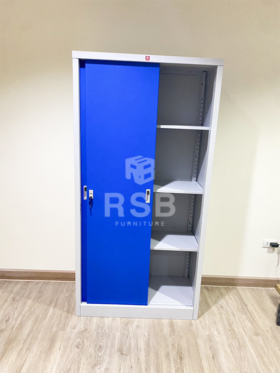 ภาพถ่ายจากหน้างานจัดส่งตู้เอกสารเหล็กบานเลื่อนแบบทึบ ยี่ห้อ Lucky world รุ่น KSS-914 รหัสสินค้า 795 มาพร้อมกับมือจับแบบฝัง และกุญแจล็อค สามารถเก็บเอกสารสำคัญได้ มีสีให้เลือก หน้างานนี้เลือกใช้สีน้ำเงินค่ะ รุ่นนี้เปลี่ยนสีได้เฉพาะบานเลื่อน