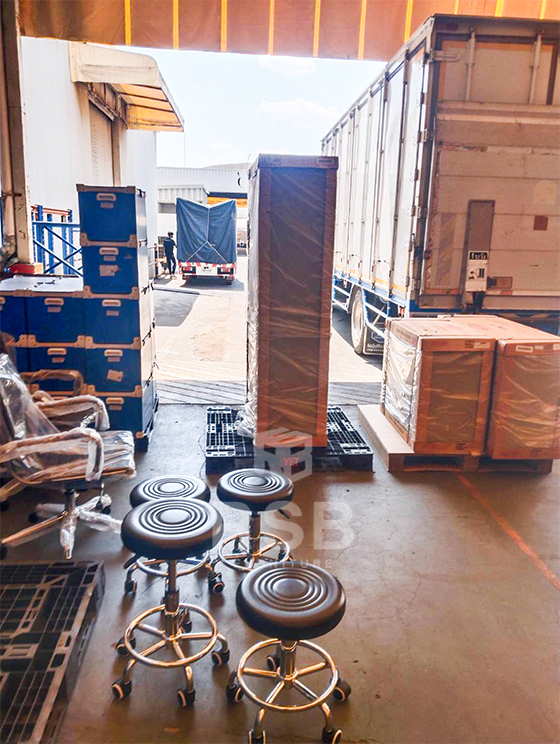 ภาพถ่ายจากหน้างานจัดส่งถึงสถานที่เรียบร้อย เก้าอี้บาร์และเก้าอี้สำนักงานค่ะ เก้าอี้บาร์ รหัสสินค้า 4660 เป็นเก้าอี้บาร์ตัวเตี้ย รุ่นขายดี และส่วนเก้าอี้เป็นเก้าอี้สำนักงาน หุ้มด้วยหนัง PU เหล็กเก้าอี้หนาพิเศษ 1.5 mm รหัสสินค้า 3121