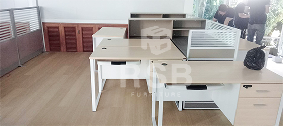 ภาพถ่ายจากหน้างาน ออฟฟิศเปิดใหม่เลือกซื้อโต๊ะคอมพิวเตอร์ขาเหล็ก และพาทิชั่น กับทาง RSB ไปใช้งานค่ะ เลือกโต๊ะคอมพิวเตอร์ ไปใช้จำนวน 2 รุ่น รุ่นแรกโต๊ะคอมพิวเตอร์ ขาเหล็กกล่องตัว C ขนาดกว้าง 80 cm คีย์บอร์ดแบบถาด รหัสสินค้า 3525 อีกรุ่นโต๊ะคอมพิวเตอร์ คีย์บอร์ดแบบถาด 2 ลิ้นชักพร้อมกุญแจล็อครหัส ขาเหล็กกล่องตัว C รหัสสินค้า 3524 ส่วนพาทิชั่น รหัสสินค้า 2959 รุ่น เฟรม แบบครึ่งทึบครึ่งกระจกใสขัดลาย มีเฟรมปิด มีกล่องไฟด้านล่างค่ะ