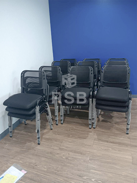 ภาพถ่ายจากหน้างานที่นำเก้าอี้ขาเหล็ก 4 ขาไม่มีล้อไปจัดส่งค่ะ รหัสสินค้า 4769 รุ่นนี้เป็นเก้าอี้ห้องประชุม เก้าอี้สัมมนา รุ่นที่ขายดีและราคาไม่แรง พนักพิงหุ้มด้วยตาข่ายเป็นเหนียว โครงขาเหล็กแข็งแรง พ่นสีดำรูปทรงรี รับน้ำหนักได้เยอะเลยค่ะรุ่นนี้