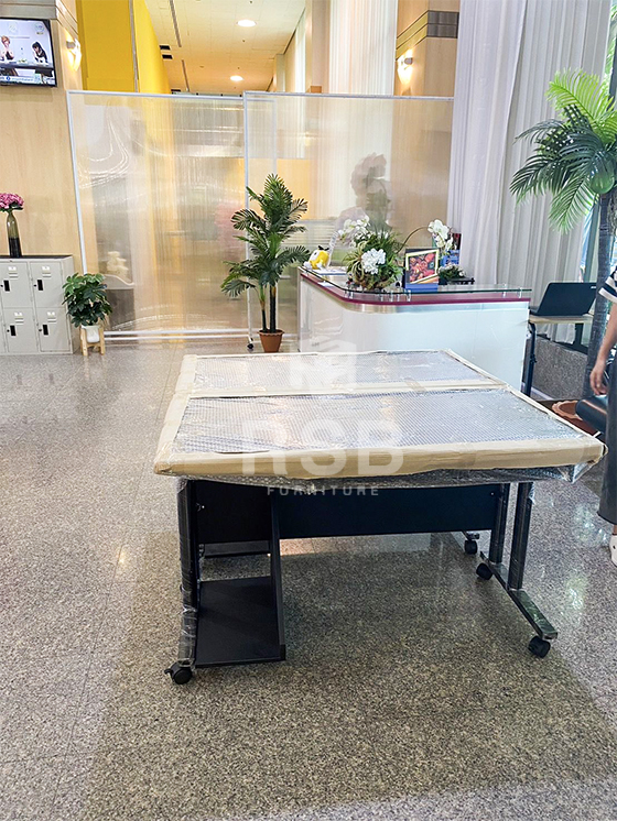 ภาพถ่ายจากหน้างานที่เรานำโต๊ะคอมพิวเตอร์ไปจัดส่งค่ะ โต๊ะคอมพิวเตอร์รุ่นที่ลูกค้าหน้างานนี้เลือกไปใช้จะเป็นโต๊ะแบบมีล้อเลื่อน ขาเหล็กพ่นสีดำ รหัสสินค้า 1570 มีรางคีย์บอร์ด และ ช่อง CPU ขาเหล็กกลม 2 นิ้ว หนาไม่น้อยกว่า 1.2 mm รับน้ำหนักได้ดี เลือกสีของโต๊ะได้มีหลายสี 1 ตัวสามารถเลือกได้ 2 สี แต่หน้างานนี้ลูกค้าเลือกเมลามีนสีดำล้วนทั้งตัวค่ะ
