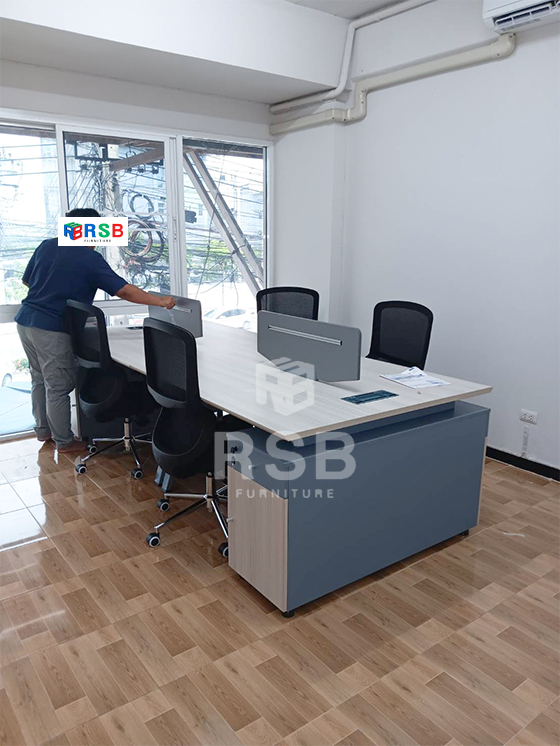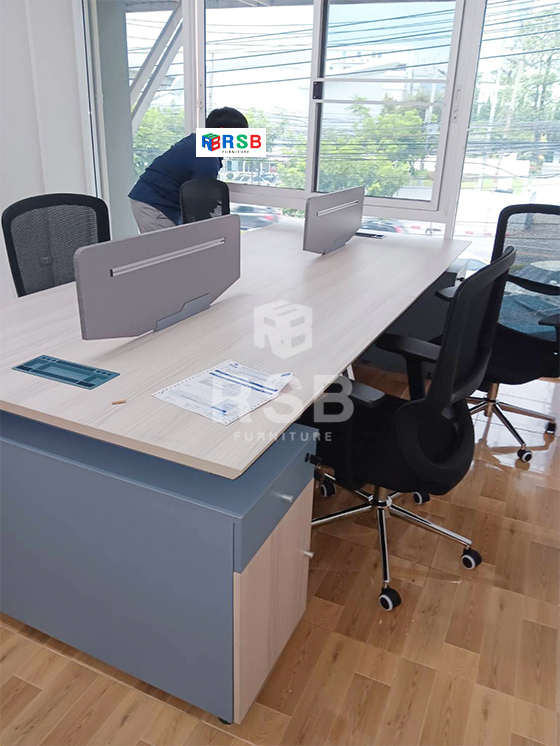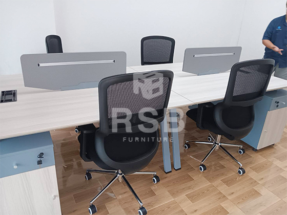 ภาพถ่ายจากหน้างาน จัดส่งและประกอบติดตั้งเสร็จเรียบร้อยค่ะ โต๊ะทำงานกลุ่ม 2 ที่นั่งและเก้าอี้สำนักงานพนักพิงตาข่าย ในภาพลูกค้าใช้เป็นโต๊ะทำงานกลุ่ม 2 ที่นั่ง จำนวน 2 ตัวนำมาต่อกันทำเป็นโต๊ะทำงาน 4 ที่นั่งค่ะ รุ่นนี้สามารถต่อเป็น 4 ที่นั่งได้ด้วยการซื้อตัวต่อของโต๊ะรุ่นนี้ จะเป็นการใช้ขาร่วมกัน ราคาถูกกว่าซื้อเป็นตัวแยกกันค่ะ แต่หน้างานนี้ลูกค้าเผื่อนำไปใช้งานในห้องอื่น รหัสสินค้า 4736 เก้าอี้สำนักงาน พนักพิงตาข่าย รหัสสินค้า 5158 พนักพิงดีไซน์ 2 ชั้น เหมือนมีหมอนรองพนักพิงอีกชั้น เวลาพิงเอนซับพอตหลังได้ดีมาก นั่งสบาย
