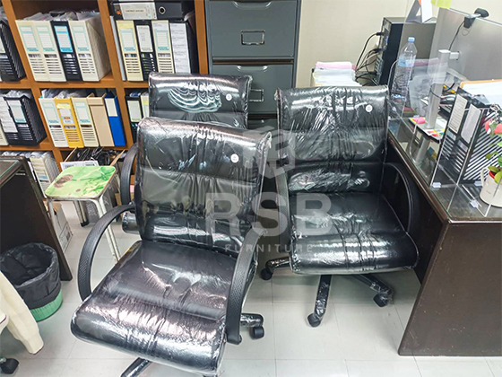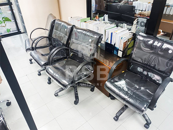 ภาพถ่ายจากหน้างานภายในออฟฟิศโซนทำงาน ลูกค้าเลือกใช้เก้าอี้สำนักงาน รุ่น F2 ยี่ห้อ FORTE รหัสสินค้า 3017 ที่ท้าวแขนทำจากพลาสติกฉีดขึ้นรูป เบาะที่นั่ง และพนักพิง ทำด้วยฟองน้ำ โพลียูรีเทนแบบยืดหยุ่น รุ่นนี้สินค้ารับประกัน 1 ปี