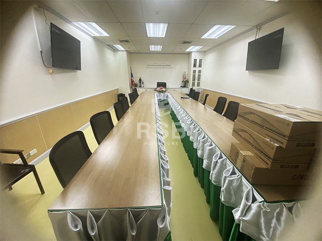 ภาพถ่ายจากหน้างานเป็นโซนห้องประชุมของบริษัทลูกค้าค่ะ ลูกค้าได้สั่งซื้อเก้าอี้ทำงาน รหัส 4455 ไปใช้นั่งการนั่งประชุมค่ะ รุ่นนี้ตอบโจทย์ลูกค้า เพราะมีราคาที่ไม่เกินงบประมาณของลูกค้า และเบาะนั่งพนักพิงกว้าง นั่งสบายมากค่ะ ส่วนโต๊ะประชุมเลือกใช้เป็นโต๊ะประชุมตัวต่อ ขาเหล็กปั้มเงาค่ะ รหัสสินค้า 3109 ได้เลือกหน้าท๊อปเป็นเมลามีนสีคาปูและขาปั้มเงาสีขาวค่ะ