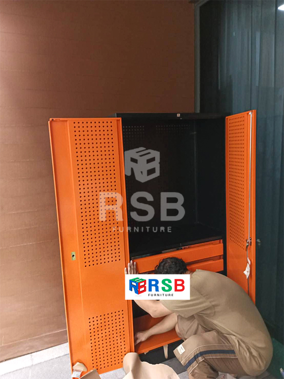 ภาพถ่ายจากหน้างานที่นำสินค้าไปจัดส่งถึงสถานที่ค่ะในภาพเป็นตู้เหล็กเก็บเครื่องมือช่าง แบบ 2 บานเปิด รหัสสินค้า 2251 ด้านในมี 1 แผ่นชั้น ปรับระดับได้ และมี 2 ลิ้นชัก รับน้ำหนักได้ 40 kg./ลิ้นชัก แข็งแรง เหมาะกับการใช้ในโรงงาน อู่ซ่อมรถ