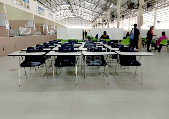 ผลงาน จัดส่ง เก้าอี้เลคเชอร์ มีตะแกรงล่าง แผ่นเขียนใหญ่พิเศษ มีคานรับแผ่นเขียน รหัส 1597 สำหรับ มหาวิทยาลัย