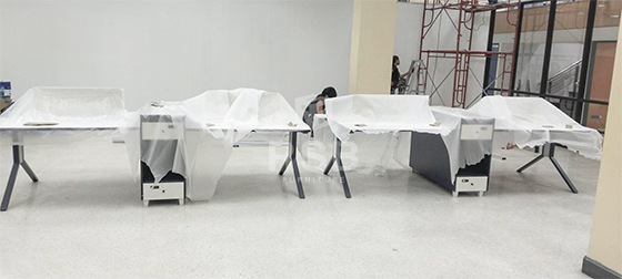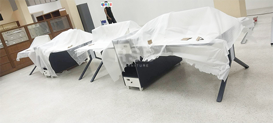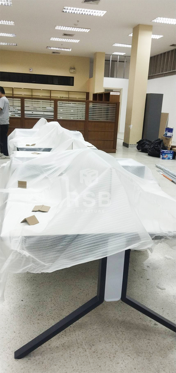 นำรีวิวจากหน้างาน จัดส่งโต๊ะทำงานกลุ่มแบบ 4 ที่นั่ง จำนวน 2 ชุด รหัสสินค้า 4415 รุ่นนี้มาพร้อมกับฉากกั้นตรงกลางท๊อป และตู้ไซค์บอร์ดตรงกลางให้ ทั้ง 2 ฝั่ง มี 2 ลิ้นชักและช่องโล่ง กุญแจล็อคเป็นแบบใส่รหัส และบนท๊อปยังมีกล่องรอดสายไฟให้ด้วยค่ะ ไม่ต้องใส่เจาะเพิ่ม