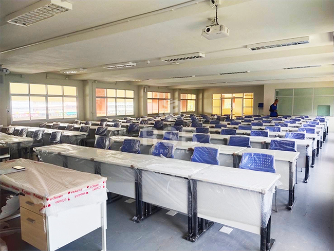 รีวิวภาพถ่ายสินค้าจำนวนหลายตัวเลยค่ะ จัดส่งถึงสถานที่ภายในวิทยาลัยเรียบร้อย ลูกค้าได้สั่งซื้อโต๊ะคอมพิวเตอร์และเก้าอี้ ไปใช้ภายในห้องเรียนคอมพิวเตอร์ที่กำลังจะเปิดใช้เรียนใหม่ค่ะ ได้เลือกใช้โต๊ะคอมพิวเตอร์ รหัสสินค้า 821 รุ่นนี้ขาเป็นเหล็กทรงกลม ท๊อปปิดผิวด้วยเมลามีน ช่วยกันรอยขีดข่วน ได้เลือกสีโต๊ะเป็นเมลามีนสีขาวล้วนทั้งตัวค่ะ ส่วนเก้าอี้เลือกใช้เป็นเก้าอี้สำนักงาน รหัส 603 ด้วยราคาที่ไม่แพง คุ้มค่า สามารถเรียงซ้อนเก็บได้สูง เวลาไม่ใช้งาน เคลื่อนย้ายสะดวกอีกด้วยค่ะ ลูกค้าเลือกสีพนักพิงเป็นสีน้ำเงินค่ะ โต๊ะคอมพิวเตอร์และเก้าอี้ที่ลูกค้าเลือกใช้เป็นรุ่นที่ขายดีทั้งสองเลยค่ะ หน้างานนี้ตอบโจทย์ลูกค้ามากๆค่ะ