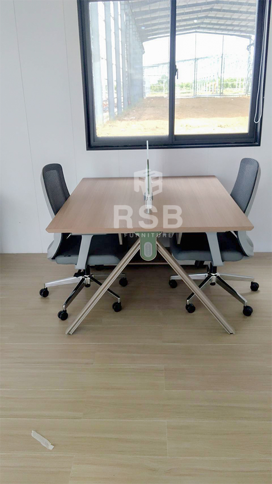รีวิวภาพถ่ายจากหน้างานจัดส่งโต๊ะทำงานกลุ่ม 2 ที่นั่งพร้อมกับเก้าอี้สำนักงานสีเทาพนักพิงตาข่ายค่ะ ลูกค้าได้นำโต๊ะทำงานกลุ่ม 2 ที่นั่ง รหัสสินค้า 5057 มาเรียงต่อกัน 3 ตัวและแยก 1 ตัว พร้อมกับเลือกใช้เก้าอี้นั่งทำงาน รหัสสินค้า 4627 โครงสร้างพนักพิงสีเทา และหุ้มด้วยตาข่ายสีเทา เบาะนั่งหุ้มด้วยหนังสีเทาค่ะ