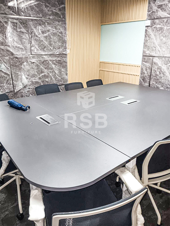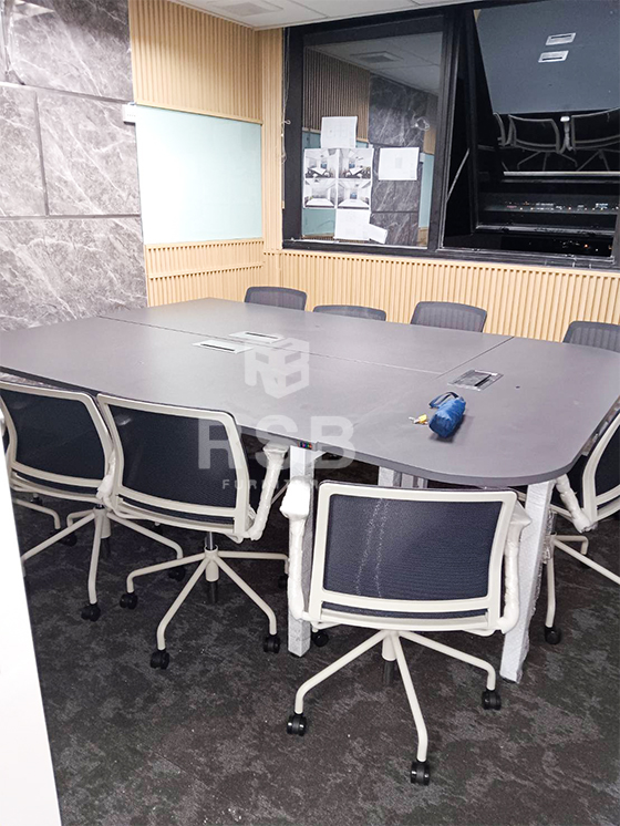 รีวิวภาพถ่ายจากหน้างาน จัดส่งโต๊ะประชุมตัวต่อ ขาเหล็กตรง รหัส 3756 พร้อมเก้าอี้นั่งประชุม ลูกค้าสั่งโต๊ะประชุมขนาดกว้าง 460 ลึก 180 cm โต๊ะผู้ร่วมประชุมจะใช้เป็นขนาดกว้าง 200 x 90 cm จำนวน 2 ตัว และโต๊ะประธานใช้เป็นขนาด กว้าง 180 x 60 cm จำนวน 1 ตัวค่ะ ส่วนเก้าอี้ใช้เป็นเก้าอี้สำนักงาน Minimal design พนักพิงและที่นั่งตาข่าย รหัส 4958