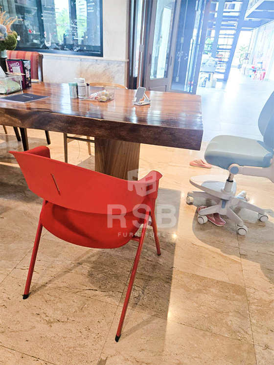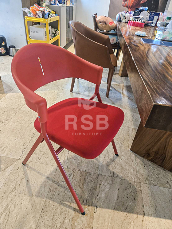 รีวิวภาพถ่ายจากหน้างาน เก้าอี้ขาเหล็ก 4 ขา รุ่นพับเบาะขึ้นได้ รหัสสินค้า 4889 เก้าอี้รุ่นนี้ออกแบบทำสีแดงทั้งตัว ในภาพลูกค้านำไปใช้นั่งทานอาหารค่ะ เบาะนั่งด้านในฟองน้ำและหุ้มด้วยผ้าฝ้าย ส่วนพนักพิงวัสดุพลาสติก PP หนา แข็งแรง ไม่แตกหักง่าย