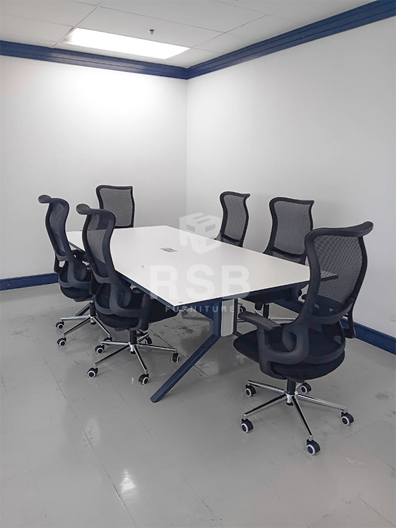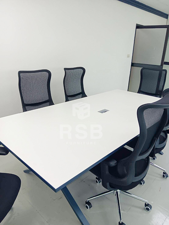 รีวิวภาพถ่ายจากหน้างาน จัดส่งโต๊ะประชุมพร้อมเก้าอี้ผู้บริหาร หน้างานเป็นโซนภายในห้องประชุมค่ะ ลูกค้าเลือกใช้โต๊ะประชุม รุ่นขายดี มีปลั๊กไฟ ฝั่งตรงขา ขนาดโต๊ะกว้าง 240 ยาว 120 cm รหัสสินค้า 4416 และเก้าอี้ใช้เก้าอี้ผู้บริหาร รหัส 5156 เป็นเก้าอี้พนักพิงตาข่าย ดีไซน์พนักพิงออกแบบโค้งเว้า รองรับกับหลังมาก เวลาพิงเหมือนมีหมอน ช้อนรองที่หลังค่ะ
