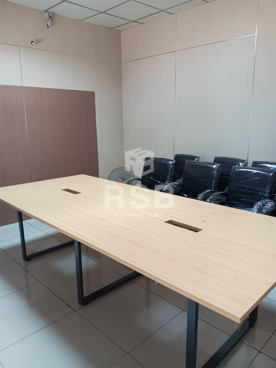 ผลงานติดตั้งโต๊ะประชุม ตัวต่อ ขาไม้ ตัว U รหัส 3559