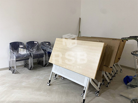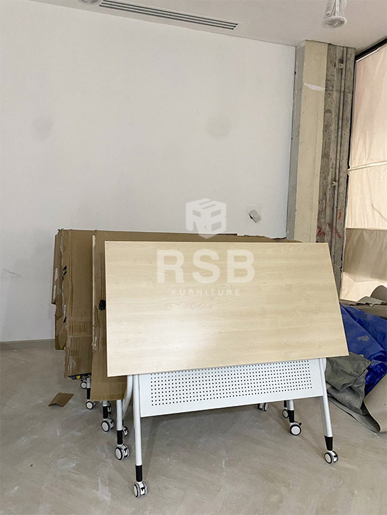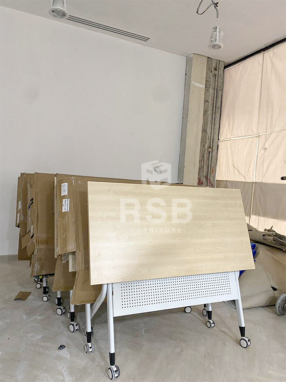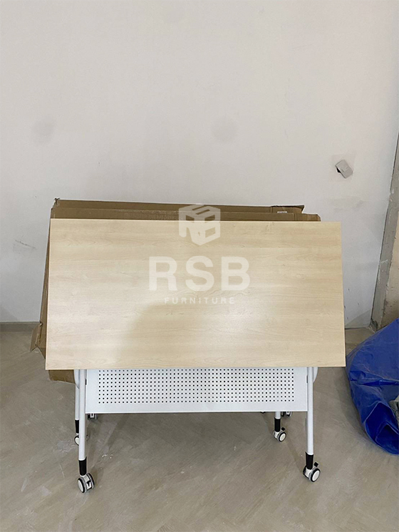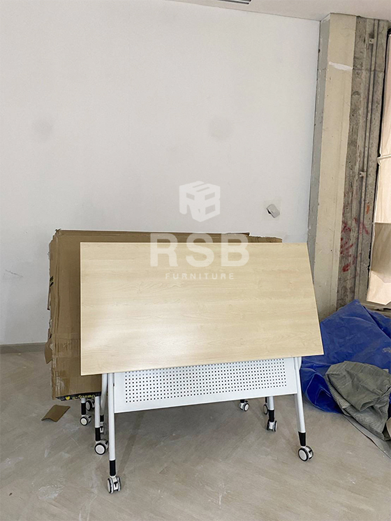 รีวิวภาพถ่ายจากหน้างานที่นำโต๊ะพับล้อเลื่อนไปจัดส่งค่ะ ในภาพเป็นโต๊ะพับล้อเลื่อน รหัสสินค้า 4712 รุ่นนี้กางออกใช้งานจะมีชั้นวางของสามารถวางของที่มีน้ำหนักได้ และมีแผ่นบังหน้าวัสดุเหล็กฉลุรูเล็กๆระบายอากาศได้ดี แผ่นท๊อปสามารถเลือกสั่งสีได้ค่ะ ในภาพหน้างานี้เลือกใช้หน้าท๊อปสีเมเปิ้ล