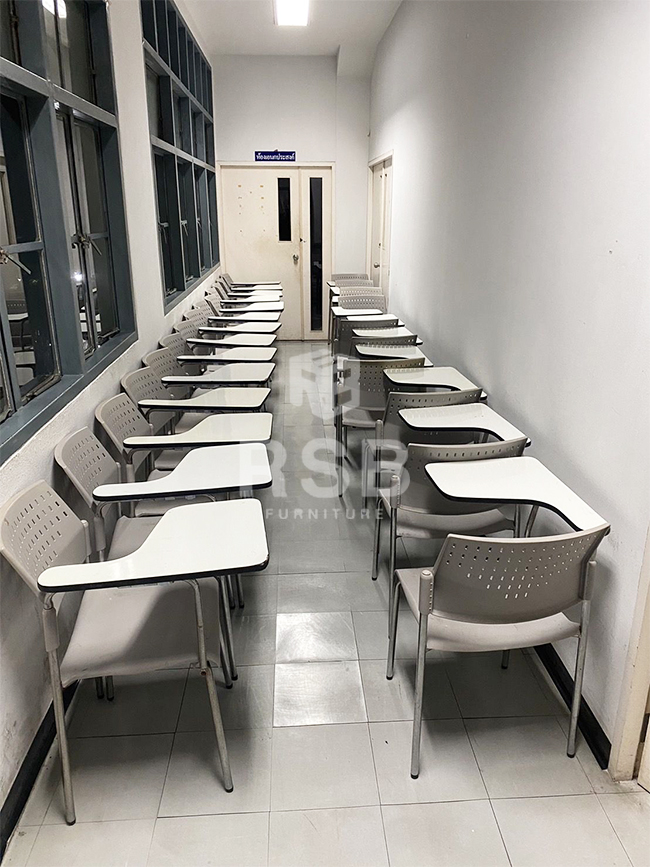 รีวิวหน้างานจัดส่งเก้าอี้เลคเชอร์จำนวนหลายตัวเลยค่ะ หน้างานนี้เป็นสถานที่ในมหาวิทยาลัยค่ะ ลูกค้าได้เลือกใช้เก้าอี้เลคเชอร์ รหัสสินค้า 287 ค่ะ รุ่นนี้โครงขาเป็นเหล็กกลม ที่นั่งและพนักพิงทำจาก PP COPOLYMER ฉีดขึ้นรูปแบบหนา พนักพิงมีรูช่วยระบายความร้อนเวลานั่ง ส่วนแผ่นที่เขียน ทำจากไม้ Particle Board ปิดผิวด้วยลามิเนต ลูกค้าเลือกสีของเก้าอี้เป็นสีเทา สวยมากๆเลยค่ะสีนี้