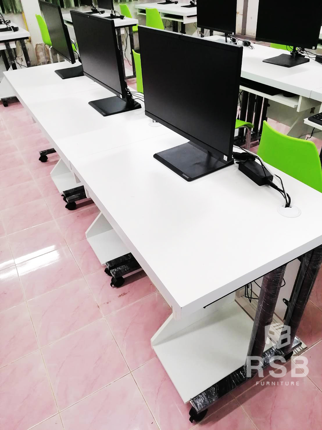 รีวิวหน้างานจัดส่งโต๊ะคอมพิวเตอร์ขาเหล็กสีดำมีล้อเลื่อน รหัสสินค้า 1570 ขนาดกว้าง 120 x ลึก 60 ซม. รุ่นนี้ มีรางคีย์บอร์ด และ ช่อง CPU ล้อเลื่อนมีระบบล็อคไม่ให้เลื่อนได้ค่ะ ขาเหล็กกลม 2 นิ้ว หนาไม่น้อยกว่า 1.2 mm รับน้ำหนักได้ดี ลูกค้าได้เลือกใช้เมลามีนสีขาวล้วนทั้งตัวค่ะ
