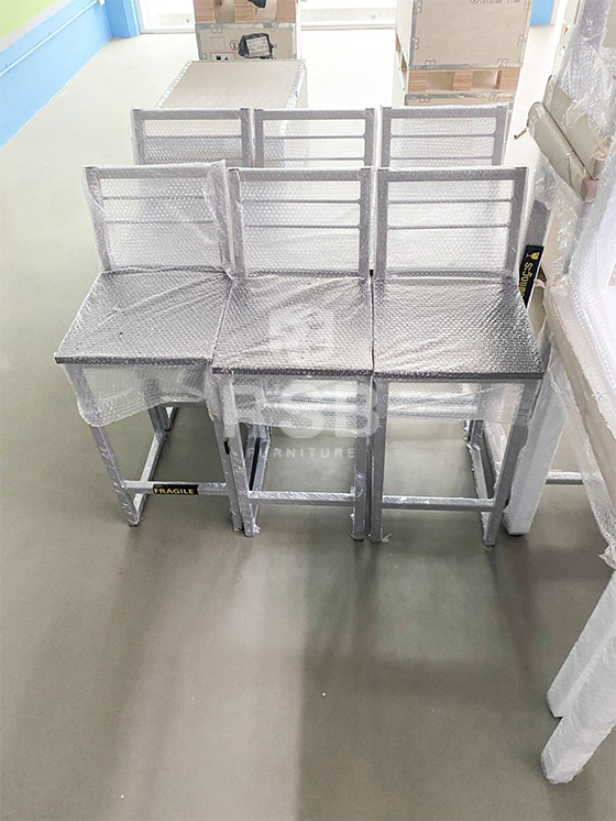 หน้างานนี้จัดส่งเก้าอี้บาร์สูง 4 ขาไม่มีล้อ และโต๊ะแบบยืนโต๊ะทำงานขาเหล็ก เลือกใช้เป็นเก้าอี้บาร์สูง LOFT DESIGN รหัสสินค้า 2801 ที่นั่งทำจากไม้ Partical ปิดผิวเมลามีนอีกชั้น โครงขาเหล็ก รับน้ำหนัก 150 KG และโต๊ะแบบยืนขาเหล็ก รหัสสินค้า 2820 โครงเหล็กพ่นสีดำพ่นสีระบบ EPOXCY ท๊อป Partical หนา 25 mm ปิดผิวเมลามีน และโต๊ะทำงานขาเหล็กทรงตรง ขนาด 120 x 60 cm TOP particle 25 mm ปิดผิวเมลามีนเกรด A รหัสสินค้า 2746 ไปใช้งานค่ะ