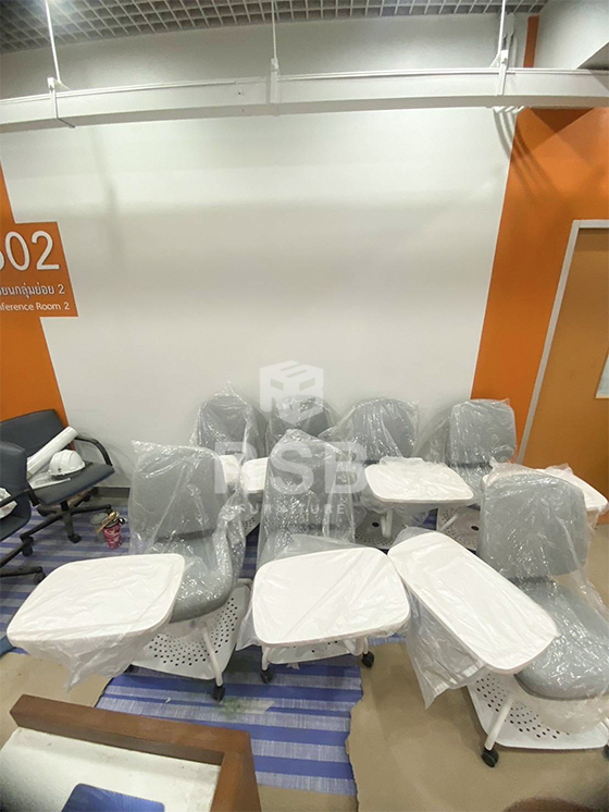 รีวิวหน้างานนี้ ลูกค้าอยากได้เก้าอี้เลคเชอร์แบบแผ่นเขียนหมุนได้ 360 องศามาใช้สำหรับนั่งเรียน ทางเราจึงแนะนำเป็นเก้าอี้เลคเชอร์ รุ่นที่แผ่นเขียนหมุนได้ 360 องศา และนั่งสบาย รหัสสินค้า 4969 โครงสร้างพนักพิงจะทำจาก PP เป็นมิตรกับสิ่งแวดล้อม สีไม่จาง แผ่นเลคเชอร์ที่เขียนทำจาก PP หนาแข็งแรง พับเก็บข้างลำตัวได้ มีปุ่มกดหมุน ทำให้สะดวกเวลา ลุก ขึ้นลง สามารถหมุนรอบเก้าอี้ได้ 360 องศาเลยค่ะ และแผ่นเขียนมีช่องวางดินสอปากกา ช่องวางแก้วหมุนออกมาใช้ได้อยู่ใต้เก้าอี้ เก้าอี้มีล้อ 4 ล้อ เป็นล้อไนลอน ไม่เป็นรอยที่พื้นง่าย เวลาลากไปมาค่ะ