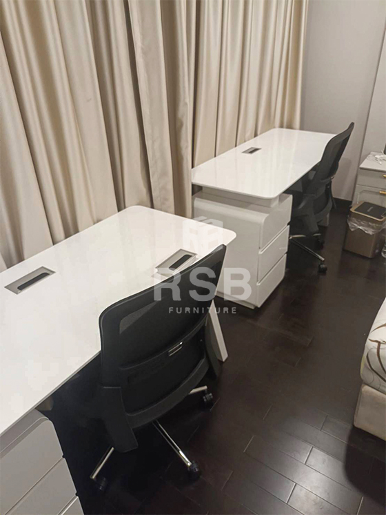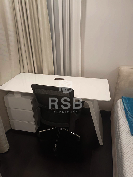 รีวิวภาพถ่ายจากหน้างาน นำโต๊ะทำงาน ปิดผิว High gloss ทั้งตัว รหัสสินค้า 5107 ไปจัดส่งค่ะ รุ่นนี้ปิดผิวด้วย High gloss กันน้ำได้ และเช็คทำความสะอาดง่าย มี 3 ลิ้นชัก รางลิ้นชักเป็นรางลูกปืน เวลาดึงลิ้นชักไม่หลุดออกจากรางค่ะ และบนท๊อปมี กล่องรอดสายไฟให้ ไม่ต้องติดตั้งเพิ่มเลย