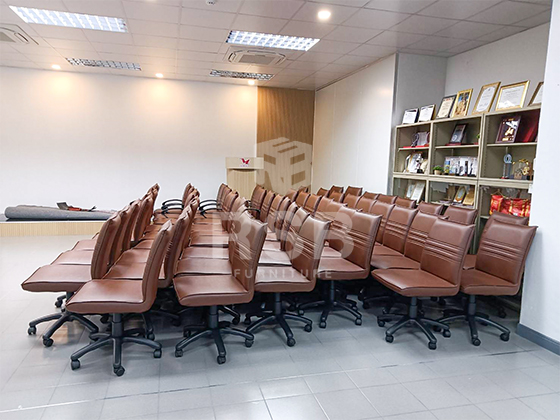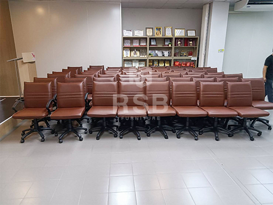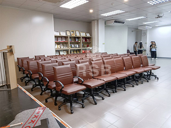 รีวิวภาพถ่ายจากหน้างานจริง นำเก้าอี้สำนักงานเบาะหนังทั้งตัว รุ่นขายดี รหัสสินค้า 973 ไปจัดส่งค่ะ รุ่นนี้สามารถเลือกสั่งผลิตสีได้ ในภาพลูกค้าเลือกใช้สีน้ำตาล (PD271) จำนวนหลายตัวเลยค่ะ ขาเก้าอี้เป็นขาเป็นไฟเบอร์ เก้าอี้ปรับสูงต่ำ ด้วย ระบบไฮโดรลิคค่ะ