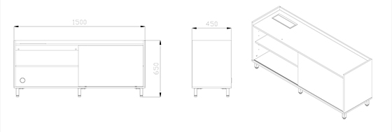 ตู้ข้างโต๊ะขวา มี Flip-up Grommet + กล่องปลั๊กไฟ ขนาด 150 x 45 cm รหัส 4850