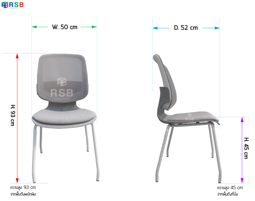 – ขนาด กว้าง 50 cm x ลึก 52 cm x สูง 93 cm (ความกว้างเฉพาะเบาะ 45 cm)