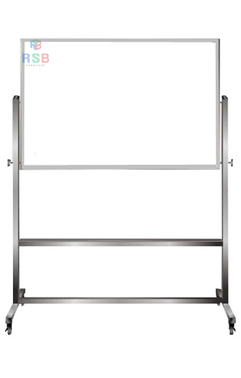 กระดานไวท์บอร์ด 2 หน้า แบบมีล้อ มีหลายขนาดให้เลือก ขาเหล็กพ่นสีอลูมิเนียม รหัส 3822