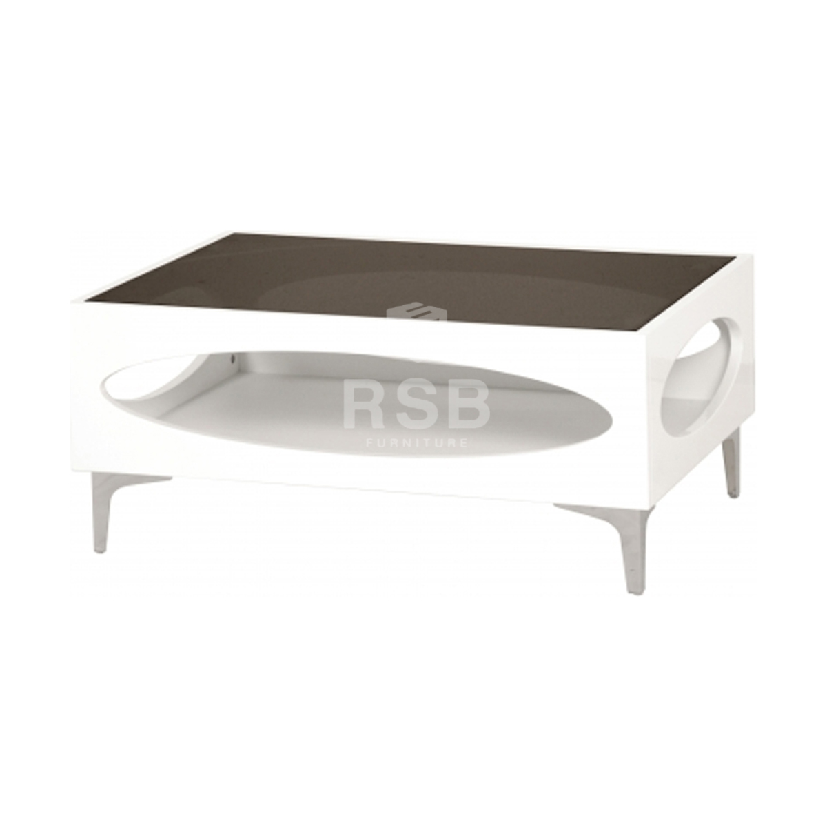 โต๊ะกลางโซฟา TOP กระจกสีชา โครงไม้เมลามีนสีขาว มี 2 ขนาด W90 / W60 CM รหัส 5253