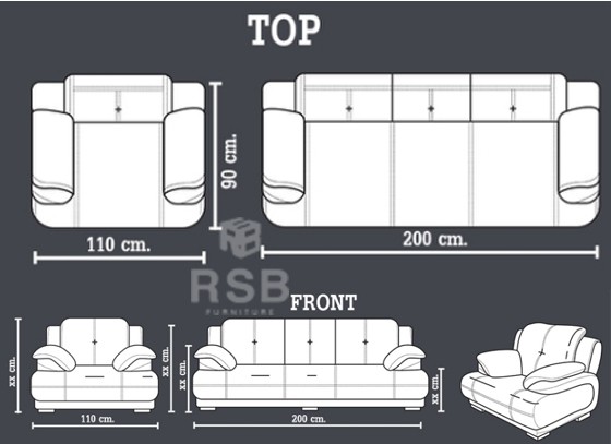 – 1 ชุด ประกอบไปด้วย โซฟา 3 ที่นั่ง 1 ชิ้น + 1 ที่นั่ง 2 ชิ้น