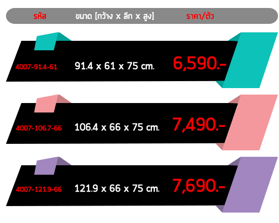 – ขนาด กว้าง 121.9 cm ลึก 66 cm สูง 75 cm