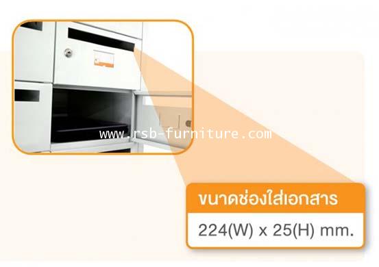 - มี 33 ช่องแยก ประตูเจาะช่องพร้อมกุญแจล็อค (บานประตูเจาะช่องกว้างสามารถใส่เอกสารขนาด A4 ได้)