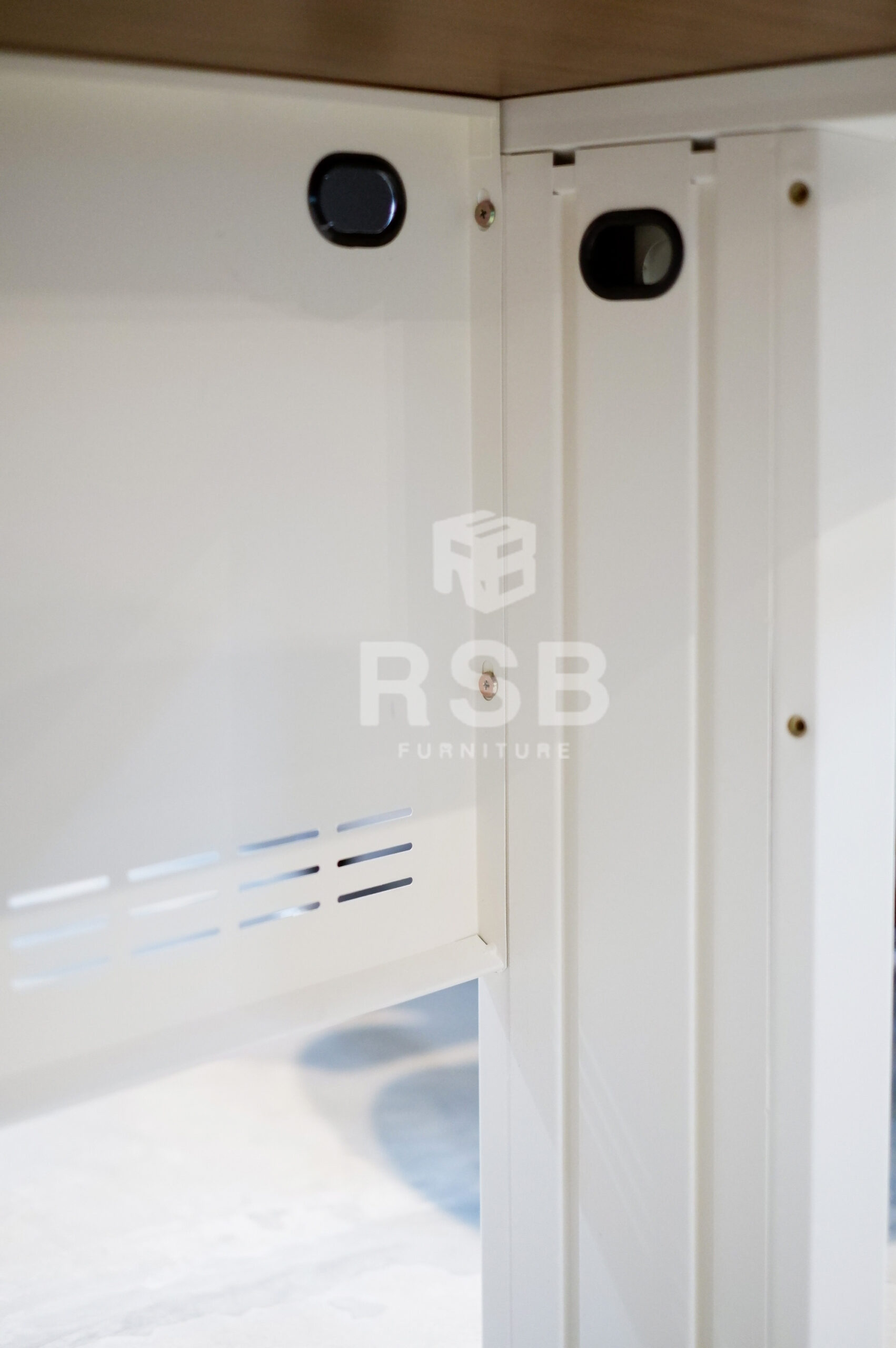 – ขาเหล็กพ่นสีขาว สายไฟสามารถลอดเก็บในขาลงมาข้างล่าง