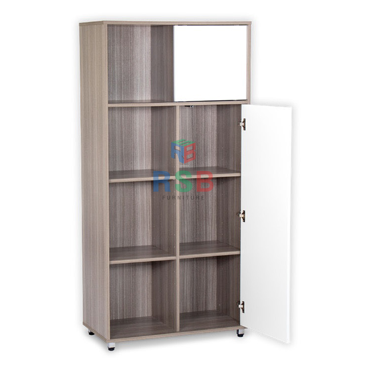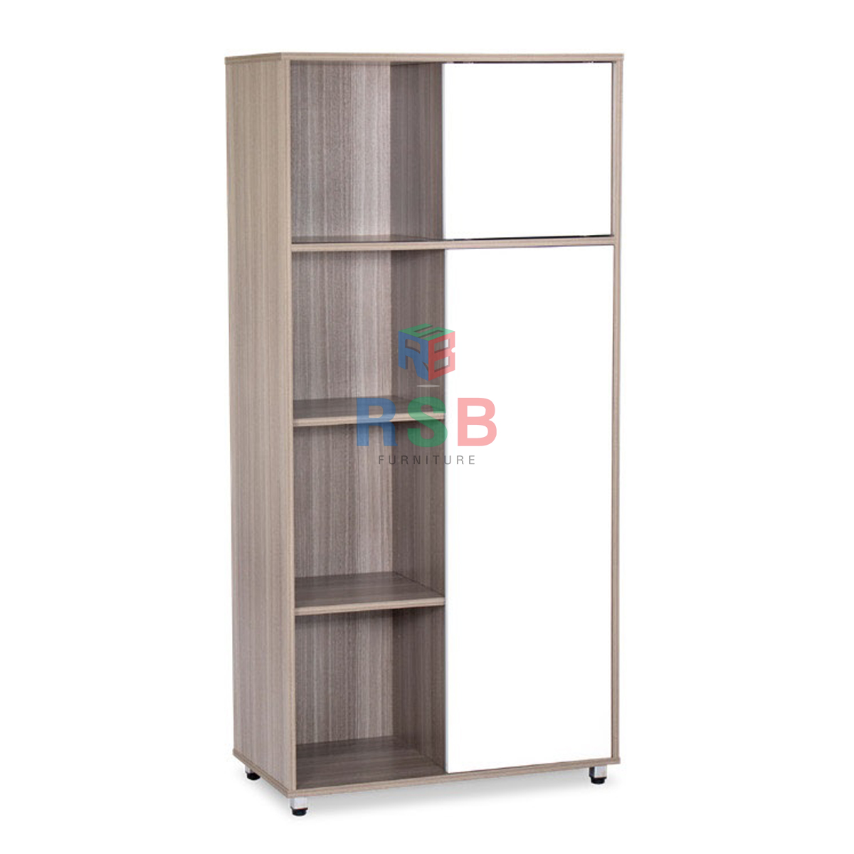 ตู้เอกสารสูง 1 บานเลื่อน 1 บานเปิด พร้อมแผ่นชั้น + ชั้นโล่ง ขนาด 80 x 40 cm รหัส 4854