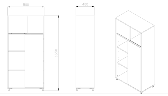 – บานเลื่อน 1 บาน + บานเปิด 1 บาน พร้อมแผ่นชั้น 2 แผ่น และชั้นโล่ง