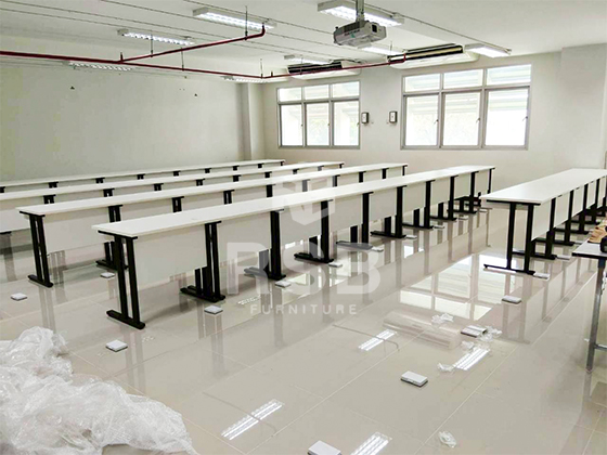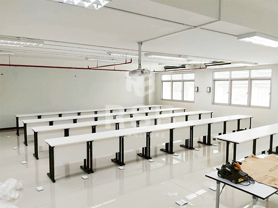 ภาพถ่ายจากหน้างานจริงค่ะ ลูกค้าได้เลือกซื้อโต๊ะคอมพิวเตอร์ขาเหล็ก รหัส 821 ดีไซน์ของขาเป็นขาตรงกลม หน้าท็อปเคลือบผิวด้วยเมลามีน เลือกสีของหน้าท็อปและบังหน้าเป็นสีขาว ตัดกับขาเหล็กสีดำ สวยมาก เพราะห้องที่จะนำโต๊ะไปไว้ พื้นเป็นกระเบื้องสีขาว กำแพงสีขาว ลูกค้าเลยอยากได้สีโทนทำให้ห้องดูสบายตา เรียบร้อย เป็นสไตล์โมเดิร์น