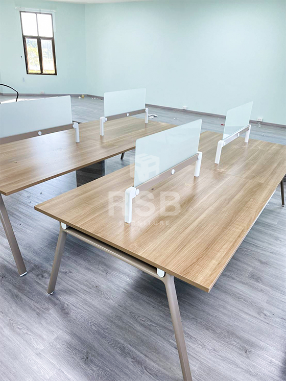 จัดส่งและประกอบติดตั้งเรียบร้อยค่ะ หน้างานนี้เป็นโซนห้องทำงานภายในออฟฟิศที่กำลังจะเปิดใหม่ ลูกค้าเลือกซื้อเป็นโต๊ะทำงานกลุ่ม แบบ 4 ที่นั่ง พร้อมมีฉากกั้นกระจก ฉากกั้นเลื่อนปรับตำแหน่งได้ รหัสสินค้า 4919 รุ่นนี้ทีอปโต๊ะสามารถเลือกสั่งผลิตสีได้ด้วยค่ะ โครงขาเหล็กหนา พิเศษ 1.5 mm แข็งแรง ทนทาน