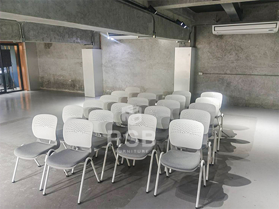 ลูกค้าหน้างานนี้ต้องการเก้าอี้ขาเหล็ก 4 ขา ไม่มีล้อ สไตล์มินิมอลสีเทาสลับขาวเพื่อให้เข้ากับโทนห้องค่ะ ได้เลือกเป็นเก้าอี้อเนกประสงค์ โครงขาเหล็กหนา รหัสสินค้า 4776 รุ่นนี้พนักพิงและขาดีไซน์สีขาว ส่วนเบาะนั่งหุ้มด้วยผ้าสีเทา ตอบโจทย์ลูกค้ามากค่ะรุ่นนี้ และรุ่นนี้ยังสามารถเรียงชิดกันแบบเก้าอี้แถวได้ มีที่ติดเกี่ยว ยึดต่อกับเก้าอี้ข้างๆค่ะ