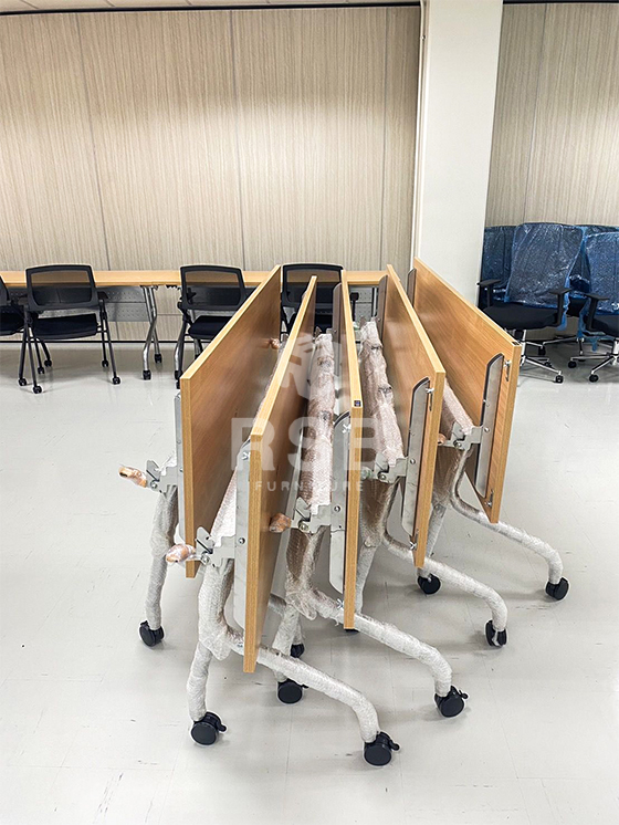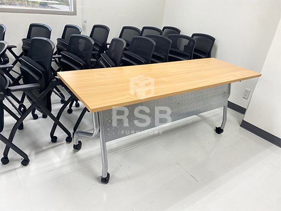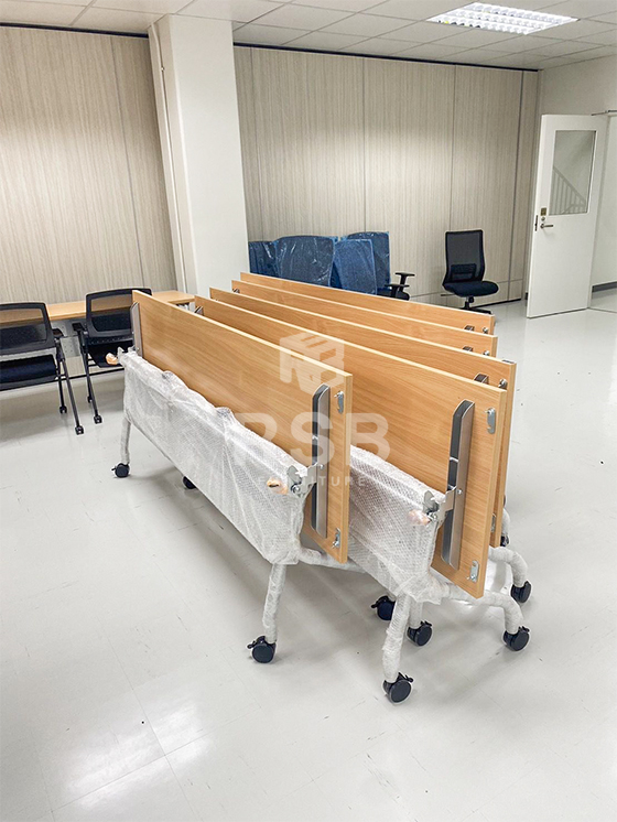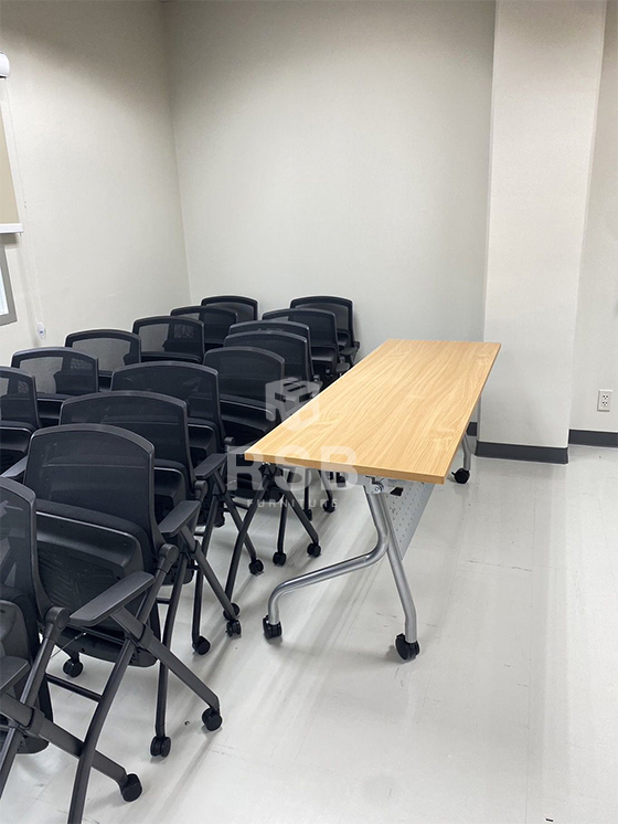 ลูกค้าหน้างานนี้ต้องการเก้าอี้และโต๊ะสำหรับห้องจัดอบรม หรือห้องสัมมนาค่ะ ได้เลือกใช้เป็นเก้าอี้พับล้อเลื่อน รหัสสินค้า 4717 รุ่นนี้โครงเหล็กหนา 1.5 mm รับน้ำหนักได้เยอะ เหมาะกับการนำมาใช้งานแบบหน้างานนี้เลยค่ะ และการเลือกใช้เป็นเก้าอี้พับล้อเลื่อนจะช่วยสะดวกในเรื่องการจัดเก็บและช่วยประหยัดพื้นที่ และส่วนโต๊ะ เลือกใช้เป็นโต๊ะพับ รหัสสินค้า 719 ประหยัดพื้นที่จัดเก็บและยังสามารถเคลื่อนย้ายสะดวก เผื่อนำโต๊ะไปใช้ในหน้างานอื่นๆอีกด้วยค่ะ