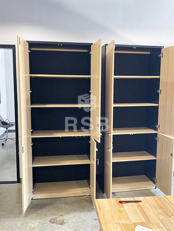 ลูกค้าหน้างานนี้ต้องการตู้เอกสารสูงแบบบานเปิด ได้เลือกใช้เป็นตู้เอกสารสูง 5 ชั้น รหัสสินค้า 995 ภายในมีแผ่นชั้น 5 แผ่น ตู้ปิดด้วยเมลามีนเกรด A ลูกค้าเลือกเฉพาะหน้าบานเปิดสีเมเปิ้ล และส่วนอื่นเลือกเป็นสีดำค่ะ