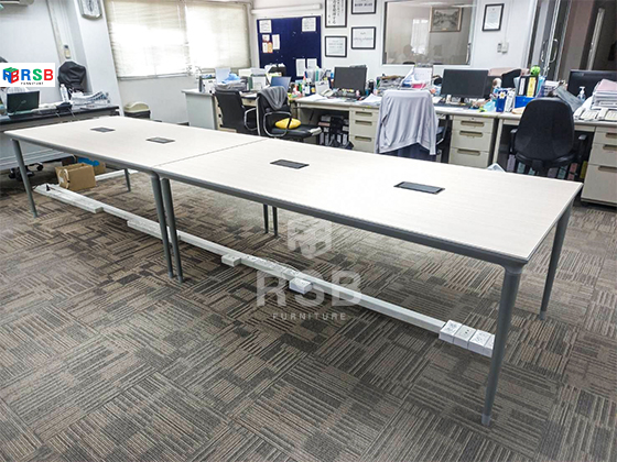 ลูกค้าต้องการโต๊ะประชุมไว้คุยงานปรึกษางานกันแค่ภายในทีมค่ะ ได้เลือกใช้เป็นโต๊ะประชุมขาเหล็กดีไซน์ ขนาด กว้าง 200 x ยาว 100 x สูง 75 ซม. รหัสสินค้า 3801 จำนวน 2 ตัวไปต่อกับแนวยาวค่ะ รุ่นนี้ขาเหล็กหนาดีไซน์ทรงกรวย ที่ขอบโต๊ะปิดด้วยเหล็ก สีท๊อปโต๊ะรุ่นนี้สวยมากๆค่ะ ลูกค้าตอบโจทย์มาก