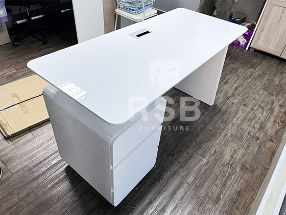 จัดส่งถึงที่เรียบร้อย หน้างานนี้ลูกค้าต้องการโต๊ะทำงานใหม่ ได้เข้ามาเลือกซื้อที่โชว์รูม RSB เลือกไปมาหลายตัว ตอบโจทย์กับโต๊ะทำงาน รุ่นปิดผิว High gloss ทั้งตัว รหัส 5107 ใช้น้ำเช็ดทำความสะอาดได้ ผิวเงางาม ทนรอย มี 3 ลิ้นชัก และมีกล่องรอดสายไฟ ท๊อปลบมุม